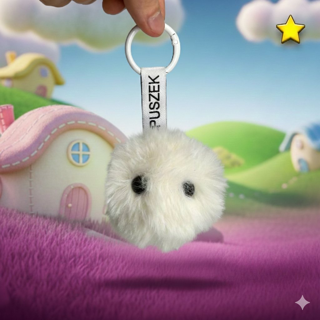 Puszek Okruszek to malutka, śnieżnobiała kuleczka z Pluszusiowa – ciekawska, mięciutka i zawsze gotowa toczyć się za Tobą w świat. Uwielbia zwisać z plecaka lub kluczy, obserwując wszystko swoimi błyszczącymi oczkami, a jego urocza nieporadność od razu poprawia humor. To idealny mini–towarzysz codziennych przygód… pod warunkiem, że dobrze go przypniesz!